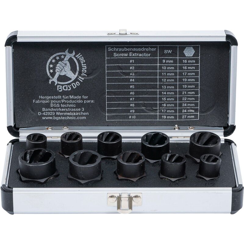 Per svitare i dadi e le teste delle viti difettose L'innovativo profilo a spirale penetra nella testa di vite, permettendo di togliere in modo sicuro l'esagono oramai inutilizzabile Con esagono esterno aggiuntivo sull'azionamento In cassetta di alluminio Oggetto della fornitura: Estrattore a bussola/cacciavite, 10 mm (3/8) / esagono esterno 16 mm: 9 mm Estrattore a bussola/cacciavite, 10 mm (3/8) / esagono esterno 16 mm: 10 mm Estrattore a bussola/cacciavite, 10 mm (3/8) / esagono esterno 17 mm: 11 mm Estrattore a bussola/cacciavite, 10 mm (3/8) / esagono esterno 19 mm: 12 mm Estrattore a bussola/cacciavite, 10 mm (3/8) / esagono esterno 19 mm: 13 mm Estrattore a bussola/cacciavite, 10 mm (3/8) / esagono esterno 21 mm: 14 mm Estrattore a bussola/cacciavite, 10 mm (3/8) / esagono esterno 22 mm: 15 mm Estrattore a bussola/cacciavite, 10 mm (3/8) / esagono esterno 24 mm: 16 mm Estrattore a bussola/cacciavite, 10 mm (3/8) / esagono esterno 24 mm: 17 mm Estrattore a bussola/cacciavite, 10