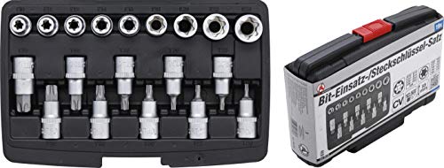 Kraftmann, 95100 Set di chiavi a bussola, inserti con profilo a T e profilo E, 12,5 (1/2), 19 pezzi