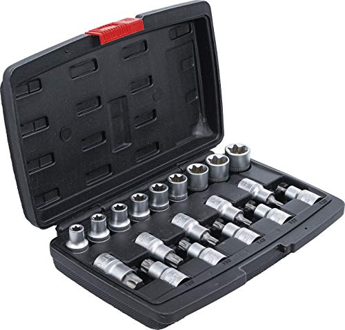 Set di chiavi a bussola, inserti con profilo a T e profilo E, 12,5 (1/2), 19 pezzi.