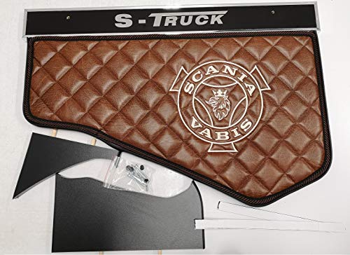 KRAM-TRUCK Ripiano Centrale Trapuntato Ricamato Per Auto, Compatibile Con SCANIA S/R Della Nuova Generazione Del 2017, Marrone Chiaro, Similpelle Espansa 10 mm, Certificato Igienico