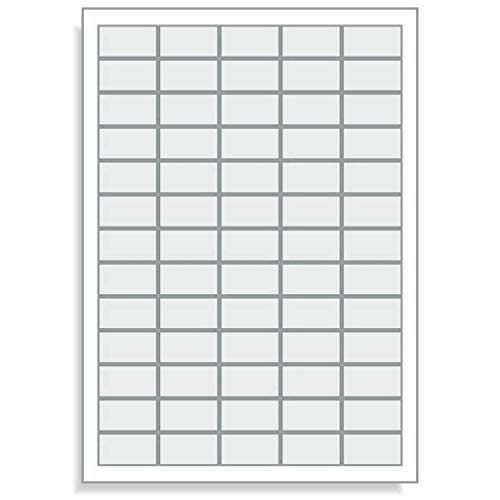 10 fogli DIN A4 - (5 x 13) per foglio - Totale 650 etichette autoadesive stampabili 38,1 x 21,2 mm per personalizzare, scrivere o stampare e incollare, etichette autoadesive / etichette per congelatore/marmellata / etichette per prezzi.