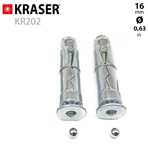 KRASER KR202 Bulloni di ancoraggio a parete o pavimento per moto o bicicletta, M10 x 70 mm, kit viti a ricircolo di sfere di sicurezza Tappi ad espansione, catena di ancoraggio lucchetto Garage, Ø16
