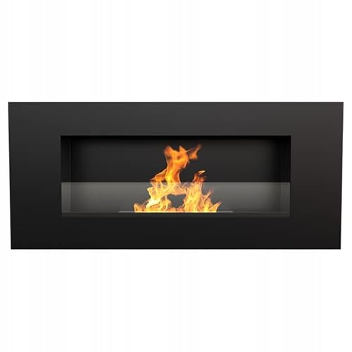 KRATKI Delta 2 Caminetto a bioetanolo + 2 oli per aromaterapia e 1 contenitore | Installazione a parete o ad incasso l Biocontenitore 0,5 l, TÜV | Acciaio, 40 x 90 cm, Nero