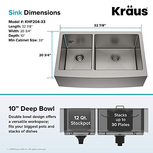 Kraus KHF204 - 33 83,8 cm Farmhouse grembiule 60/40 double Bowl 16 gauge stainless steel Kitchen Sink