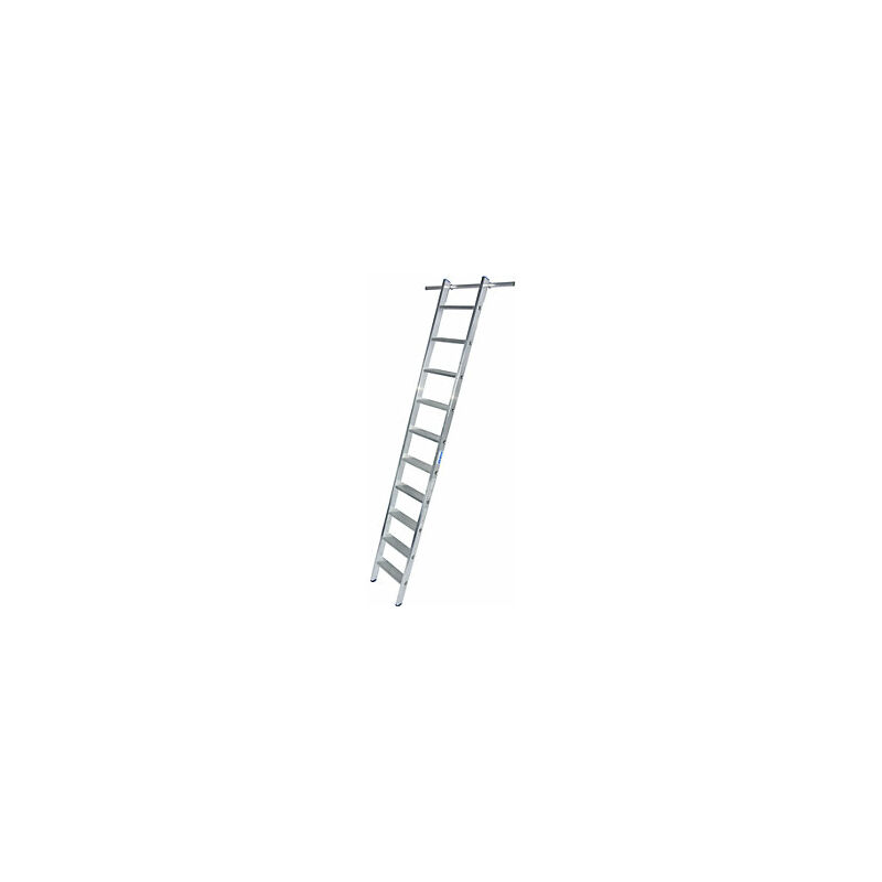 Scala a gradini per scaffalature, agganciabile, con 1 coppia di ganci, 10 gradini. Fornitura = montato. Numero gradini = 10 pz. Versione da salita = gradini. Lunghezza = 2700 mm. Materiale gradini = alluminio, mandorlato. Profondità gradini = 80 mm. Larghezza = 380 mm. Altezza di lavoro = 3600 mm. Materiale telaio = alluminio. Portata = 150 kg. Altezza di salita = 1600 mm. Altezza d'aggancio verticale = 2450 mm. Numero di ganci di fissaggio = 1 coppia. Tipo di prodotto = scale per scaffali. Solido accoppiamento flangiato gradino-montante per elevata stabilità. Salita sicura grazie a gradini profilati profondi 80 mm. Quando non è utilizzata può essere agganciata per un ingombro ridotto. Questa scala a gradini è il completamento ideale per qualsiasi sistema di scaffalature. In combinazione con un sistema di guide tubolari (diametro tubo 30 mm), questa scala offre un accesso rapido e sicuro ai livelli di scaffalatura più elevati. 2 ganci sulle estremità superiori dei montanti per
