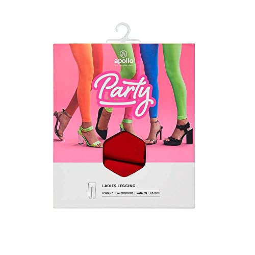 Krautwear Leggings da donna e ragazza, 60 denari, per carnevale, yoga, nero, rosso, blu, bianco, rosso, rosa, verde, giallo, Colore: rosso, S-M