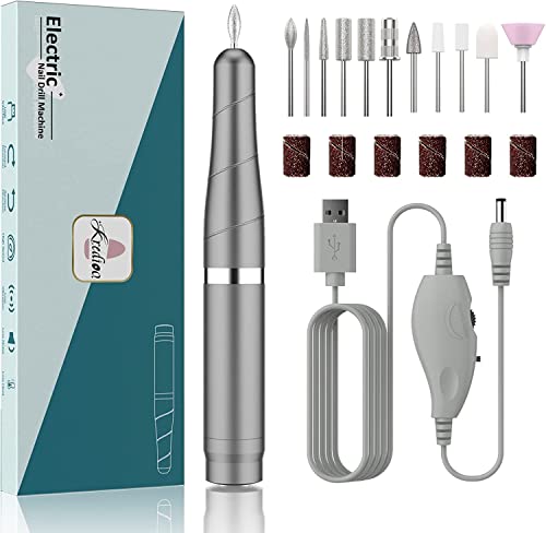 Kredioo Fresa per Unghie Professionale 20000RPM, Lima Elettrica per Manicure e Pedicure, Rimozione Gel/ Smalto, Trapano Elettrico, Kit 11 Punte Fresa Unghie, Portatile, Grigio