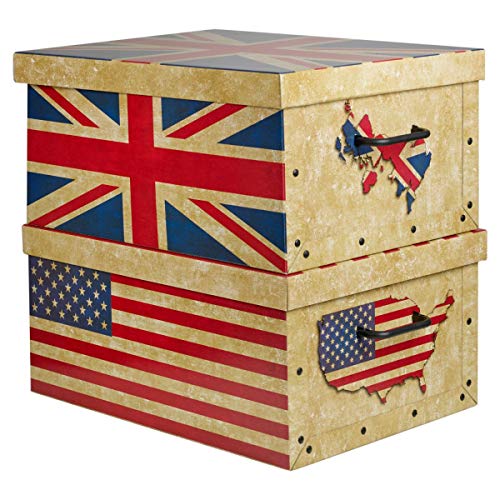 Kreher - Scatola decorativa in cartone, XXL, motivo: Bandiera UK/inglese, con maniglie Ideale per riporre oggetti o come scatola regalo