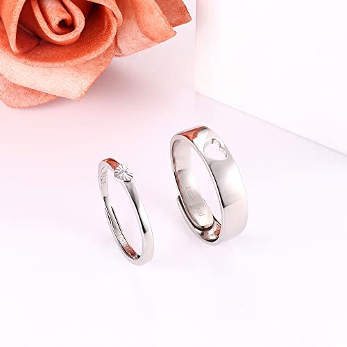KRFY Anelli per Coppie Argento Sterling 925, Anelli a Cuore Regolabili per Donna Uomo, Set di Fedi Nuziali Anelli Promessa Corrispondenza per Coppia, Set di Anelli per Ragazze Gioielli Regalo Semplice