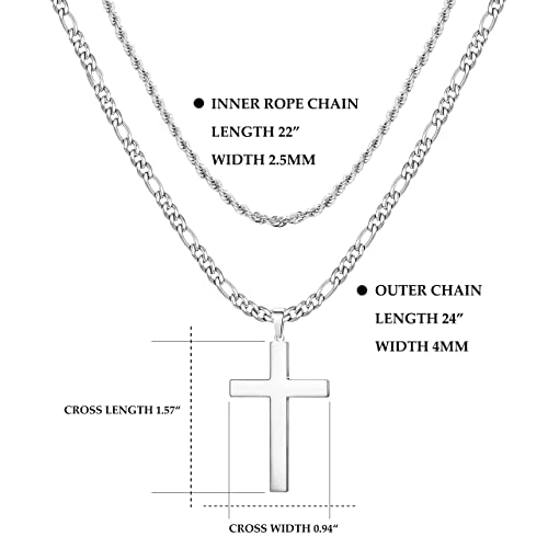 CATENA A CROCE A STRATI DELICATA : la catena di corda della collana a croce a strati è di circa 2,5 mm di larghezza, 22 pollici di lunghezza, la catena a croce è di 4 mm di larghezza e 24 pollici di lunghezza con un ciondolo a croce di 40 mm x 24 mm, sono tutti realizzati in acciaio inossidabile 316L di alta qualità acciaio. Quindi questa delicata croce è comoda da indossare, impermeabile e ipoallergenica, anche la pelle sensibile può essere utilizzata. Non renderà il tuo collo verde.
