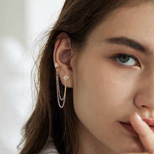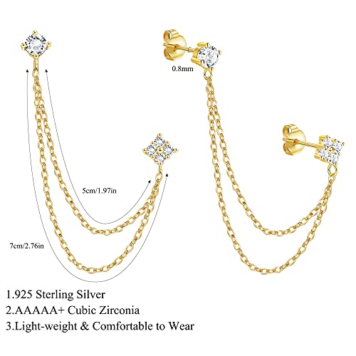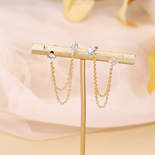 KRFY Orecchini a Bottone a Catena Argento Sterling S925 Donne Ragazze Placcato Oro 18 Carati Scalatore Crawler Catena con Nappe Pendenti Orecchini a Bottone con Scintillanti CZ per Orecchie Sensibili