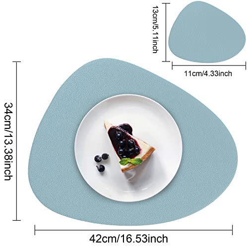 Kriogor Set di 4 Tovagliette Americana e Sottobicchieri in Pelle Artificiale, Tovagliette Colazione Impermeabili e Resistenti al Calore su Entrambi i Lati, Antiscivolo Facili da Pulire (Blu Argento)