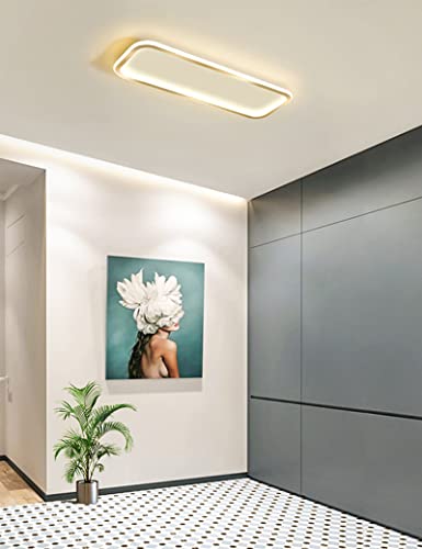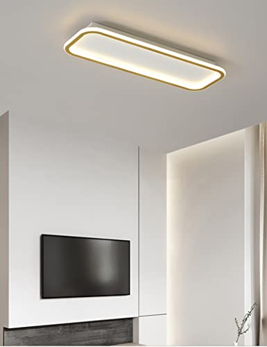 KRIPINC Plafoniera LED Soffitto Rettangolare, Lampada da Soffitto Rettangolare, Plafoniera LED Soffitto Moderna per Soggiorno, Camera da Letto, Cucina, Bagno (D'oro, Luce Tricolore)