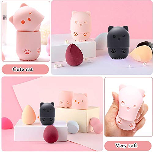 AMPIA APPLICAZIONE : Sul lato inferiore del contenitore a forma di gatto è presente un tampone di pulizia con il quale è possibile pulire la spazzola e la spugna cosmetica. Il contenitore in spugna morbido e flessibile può essere utilizzato anche per fissare il supporto della spugna per il trucco in modo da evitare deformazioni