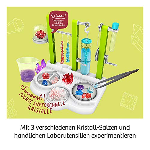 I bambini ricercatori scoprono con molto divertimento i primi esperimenti chimici e imparano chiaramente quali diversi cristalli esistono, quali forme hanno e come farli crescere da soli