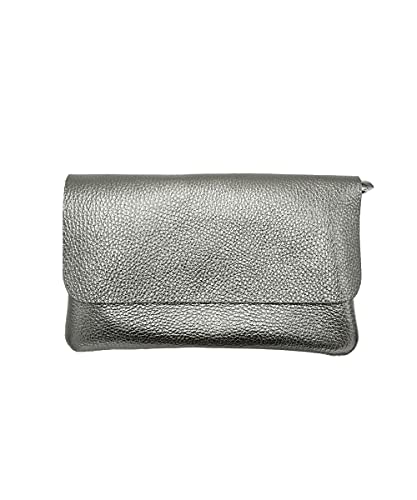 KristyX Borsetta Donna in Pelle Vera Made in Italy 6830 (Grigio Metallico)