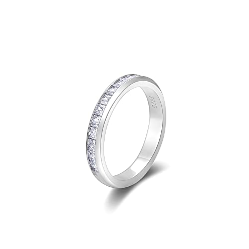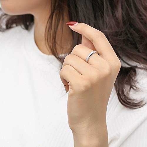 KRKC Anello Eternity Half Eternity Diamanti, Anelli Pavé Donna Argento 925, Promessa Sposa Bande Anello Diamante Simulato Zirconi Anniversario Matrimonio
