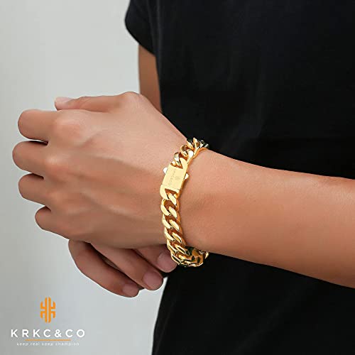 KRKC&CO Bracciale da uomo Cuban 12 mm, placcato in oro bianco 18 carati, con catena a maglia cubana cubana in acciaio inox, per uomo e ragazzo 20mm