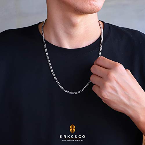 KRKC&CO Collana Uomo Acciaio 4mm Collana a Catena Cubana in Oro Bianco Hip Hop Catenina Regalo di Festa Compleanno 61.0cm