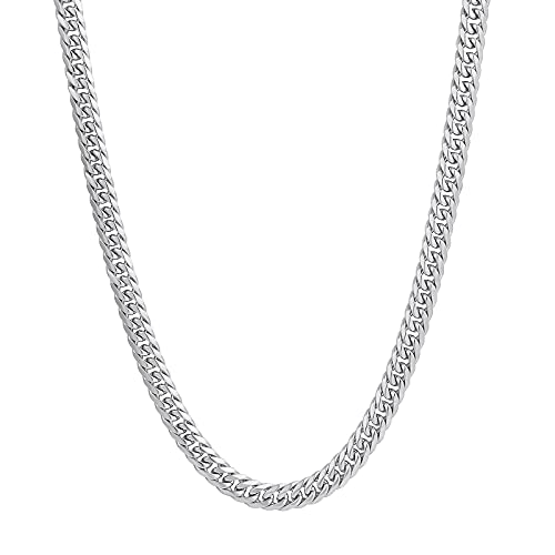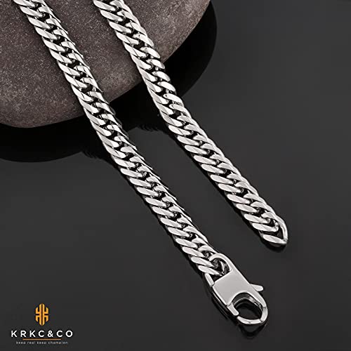 KRKC&CO - Collana da Uomo in Acciaio Inox Cuban Link Chain, 6/10 mm, Placcato Oro Bianco 18 carati, in Acciaio Inox, da Uomo, Catena in Oro Cubano