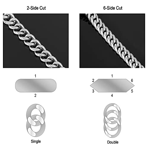 Taglio unico a sei face: ogni parte della catena è tagliata su sei lati con assoluta precisione. Più superfici di taglio rendono questa collana Cuban brillante. Il classico design a maglia barbazzale è eterno, mai obsoleto, è in stile hip-hop, stile esagerato, assolutamente accattivante