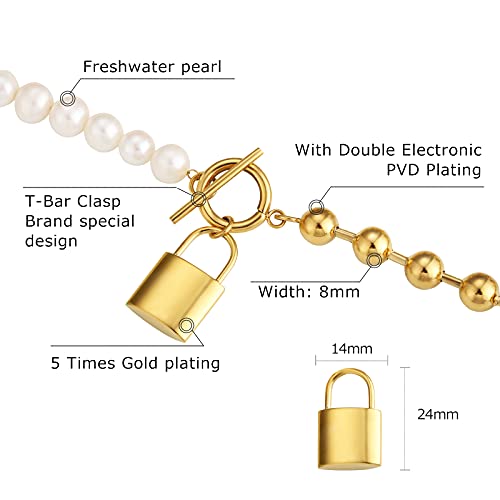 DESIGN ALLA MODA: progettato da designer esperti per darti il look più glamour. Il design esclusivo di perle metalliche combinate con perle naturali, un lucchetto metallico come ciondolo e una chiusura OT per un facile on e off. La fusione di elementi in metallo e perle ti farà sembrare una fashionista.