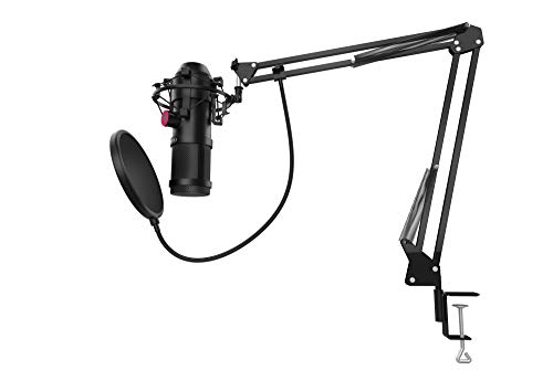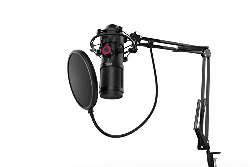 KROM Kit Microfono Streaming KAPSULE -NXKROMKPSL- Microfono Unidirezionale con Due Condensatori a Capsula, audio 3.5mm, supporto anti-shock e filtro pop, Nero