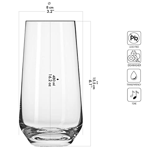 Krosno Bicchieri Acqua Succo Highball Vetro | Set di 6 | 480 ML | Collezione Splendor | Ideale per la Casa, Ristorante e Ricevimenti | Adatto alla Lavastoviglie