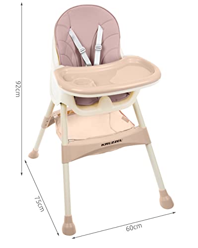 Kruzzel, 12060, Seggiolone per bambini, regolabile, pieghevole, con cintura a 5 punti, colore: rosa