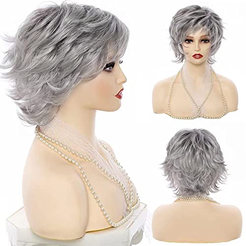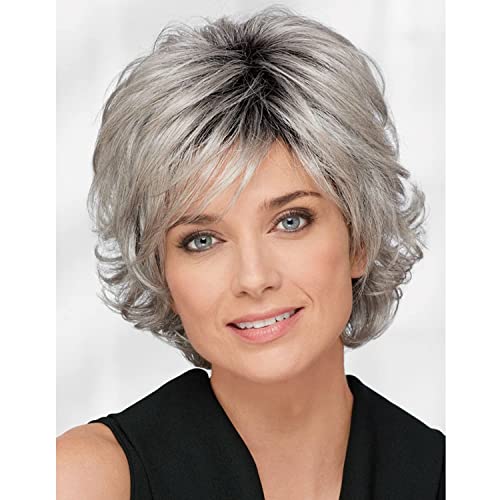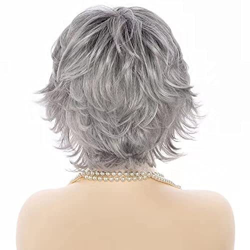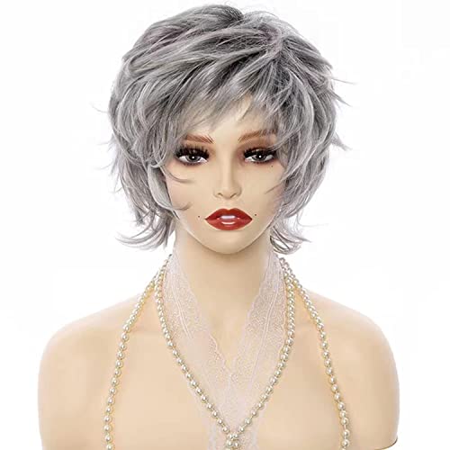 KRYLL Parrucche Corte per Donne Bianche Parrucca Grigia Ombretto Sintetico Parrucche Grigio Argento per Donne Parrucca da Vecchia Signora Capelli Naturali Parrucche da Donna