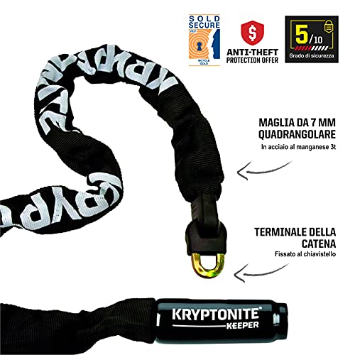 Kryptonite Catena integrata Keeper 785 | Catena antifurto per bici | Livello di sicurezza 5/10 | Offre una sicurezza supplementare per la tua bicicletta | Lunghezza 85 cm | Colore Nero