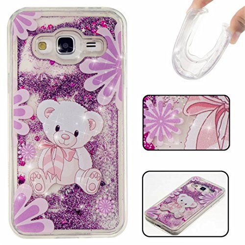 KSHOP Custodia Hard Case per Samsung Galaxy J3(2015)/Samsung Galaxy J3(2016)J310 Guscio Trasparente duro della copertura di caso TPU del silicone, 3D creativo Liquid Bling caso della protezione dinamica sabbie mobili liquido che scorre acqua Glitter Glitter lucentezza della scintilla dura libera della custodia in plastica di cristallo del telefono Fondello - Viola sabbie mobili orso sabbie mobili