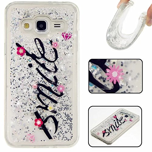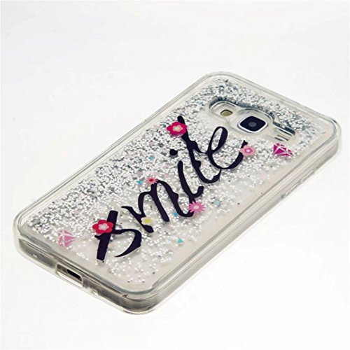 KSHOP Custodia rigida TPU copertura in silicone per Samsung Galaxy J3(2015)/Samsung Galaxy J3(2016)J310 Guscio shell conchiglia con il fluido - acqua Case Cover guscio Custodia morbida copertura posteriore di Shell copertura della cassa del manicotto con il disegno globo di neve stelle di luce blu trasparente 3D Creative - Argento sabbie mobili di sabbia Sorriso