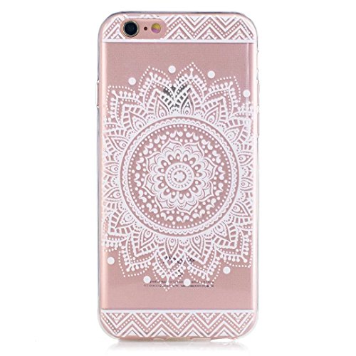 KSHOP Per iphone 6/6S(4.7)" Cover, Custodia Protettiva Assorbimento di Scossa Doppio Strato in Flessibile TPU Trasparente + Dipinto - Indiana santa fiore mandala Bianco