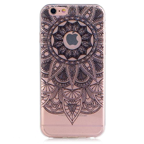 KSHOP Per iphone 6/6S(4.7)" Cover, Custodia Protettiva Assorbimento di Scossa Doppio Strato in Flessibile TPU Trasparente + Dipinto - Indiana Mandala girasole Nero