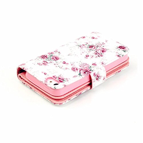 KSHOP Premio Case Cover per iPhone SE/5/5S Cáscara PU Pelle Silicone Caso Rosa Peonia Stampa Flip Folio Portafoglio Conchiglia con Stand Feature Chiusura Magnetica Carta Fessura Ammortizzante Protector Shell + Tocco Della Ppenna Metallo,Rosa Rosso