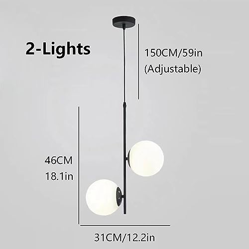 KSHSAA Lampade a sospensione a globo in vetro E27 Lampadario a soffitto a grappolo per interni 2 luci Lampada a sospensione Isola della cucina Sala da pranzo Soggiorno Illuminazione a sospensione