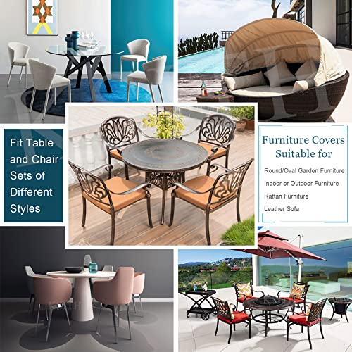 KSITH Copertura per Mobili Rotondo Tessuto Oxford Resistente 420D Esterni Impermeabili Mobili Copre Antipolvere Anti-UV, per All'aperto Giardino Terrazza Sedie Pranz- Brown|| Ø142x(H) 85cm
