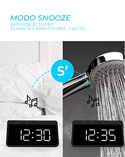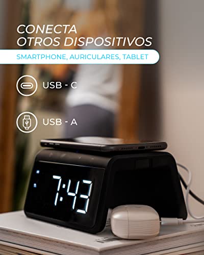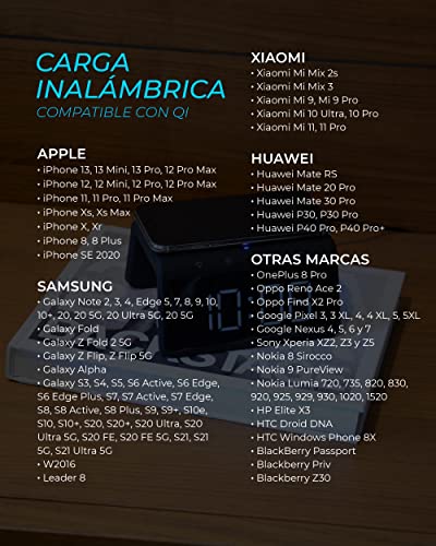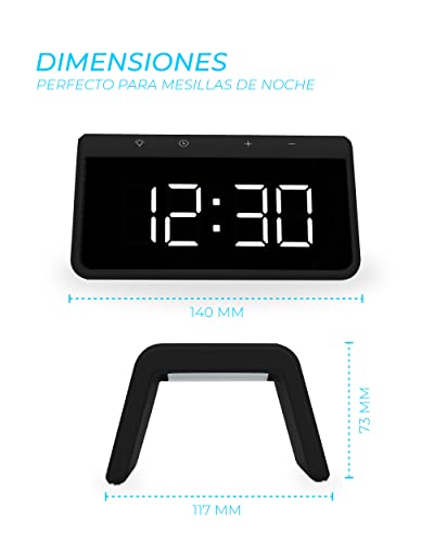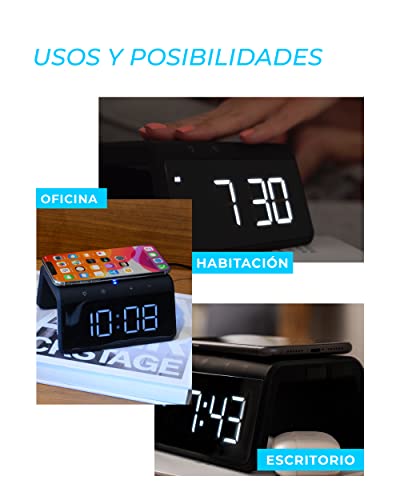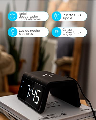 Ksix - Caricatore wireless Fast Charging, sveglia da tavolo, luce colori 10 W (nero)