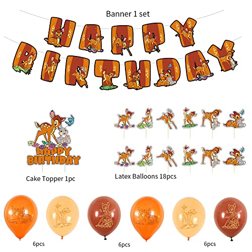 Ksopsdey 32 Pcs Bambi Set di Decorazioni Per Feste Bambi Tema Palloncini per Compleanno, Bambini Tirare Bandiera Palloncino Forniture per Torta, Decorazioni per Feste di Compleanno