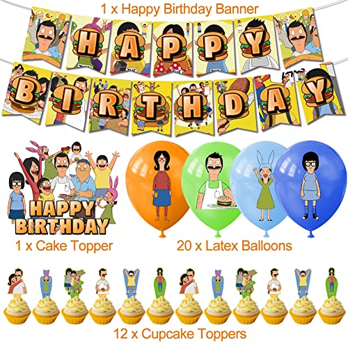 Ksopsdey Bob's Burgers Palloncini Party Supplies Bob's Burgers di Accessori per Feste di Compleanno Banner Cake Topper per la Festa Tema di Compleanno di Bob's Burgers 32Pezzi