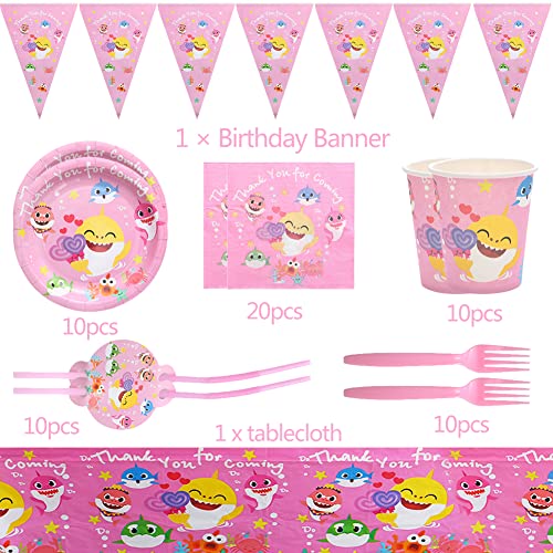Ksopsdey Decorazioni Stoviglie Per Feste Di Squalo Bambino, Stoviglie Per Feste Squalo Bambino, 62pcs Squalo Bambino Forniture Per Feste Per Bambini Stoviglie, Banner, Piatti, Tazze, Serve 10 Ospiti
