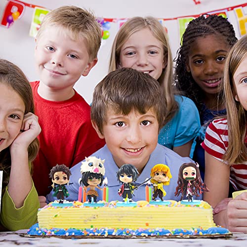 Ksopsdey Demon Slayer Figure Giocattoli, 5 Pcs Demon Slayer Cake Toppers per Bambini, Demon Slayer Figure Set, Anime Personaggi Decorazioni Torta Figure d'Azione
