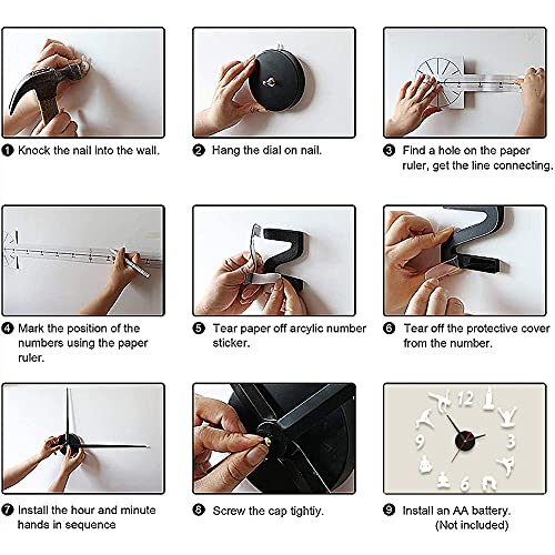 Ksopsdey Orologio da Parete Silenzioso Preciso Fai da Te, Orologio Parete Moderno Decorazione, Grande Orologio da Parete 3D Adesivo Home Office Decor Regalo