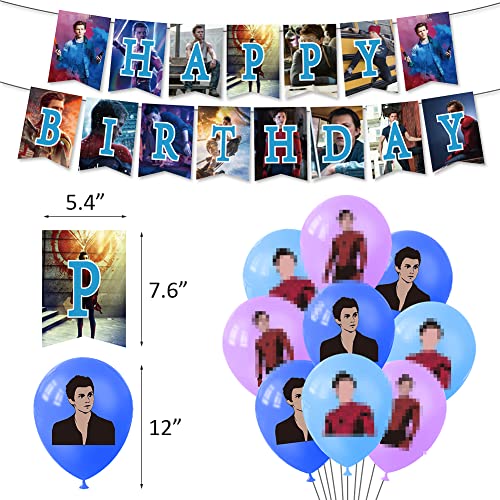 Ksopsdey 32 Pcs Palloncini Tom Holland Decorazioni Feste Compleanno Feste di Compleanno Palloncini Striscione di Compleanno Cake Topper Decorazioni per bambini