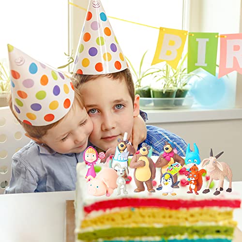 Ksopsdey 10 Pezzi Mini Figurine,Mini Figures Set, Masha e Orso Cake Topper Decorazione,Masha e Orso Cake Topper,Cake Topper Mini Figurine Decorazioni, Bambini Doccia Compleanno Decorazioni