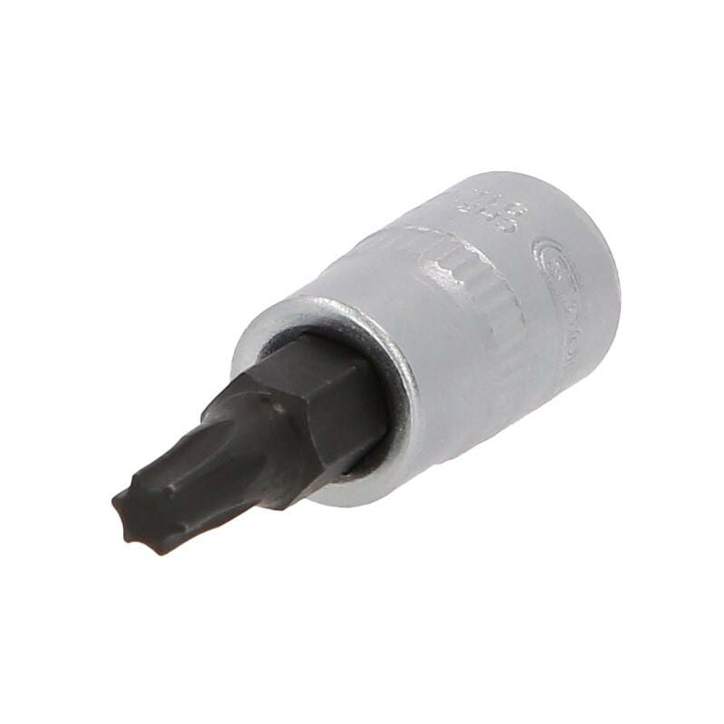 Torx Attacco quadro femmina a norma DIN 3120 / ISO 1174 con sede per sfera di tenuta Con inserto nichelato inserito a pressione Per utilizzo manuale Cromata opaca Cromo-vanadio Azionamento quadro in pollici 1/4 Lunghezza totale L in mm 37.0 Standard DIN 3120, ISO 1174 Dimensione profilo in TORX T25 Profondità T in mm 18.0 Profilo 1 Torx Peso del tessuto 15 Diametro D 12.0 Dimensioni dell'imballaggio 1 Materiale1 Feinster Chrom Vanadium Stahl, matt satiniert verchromt Forma gerändelt