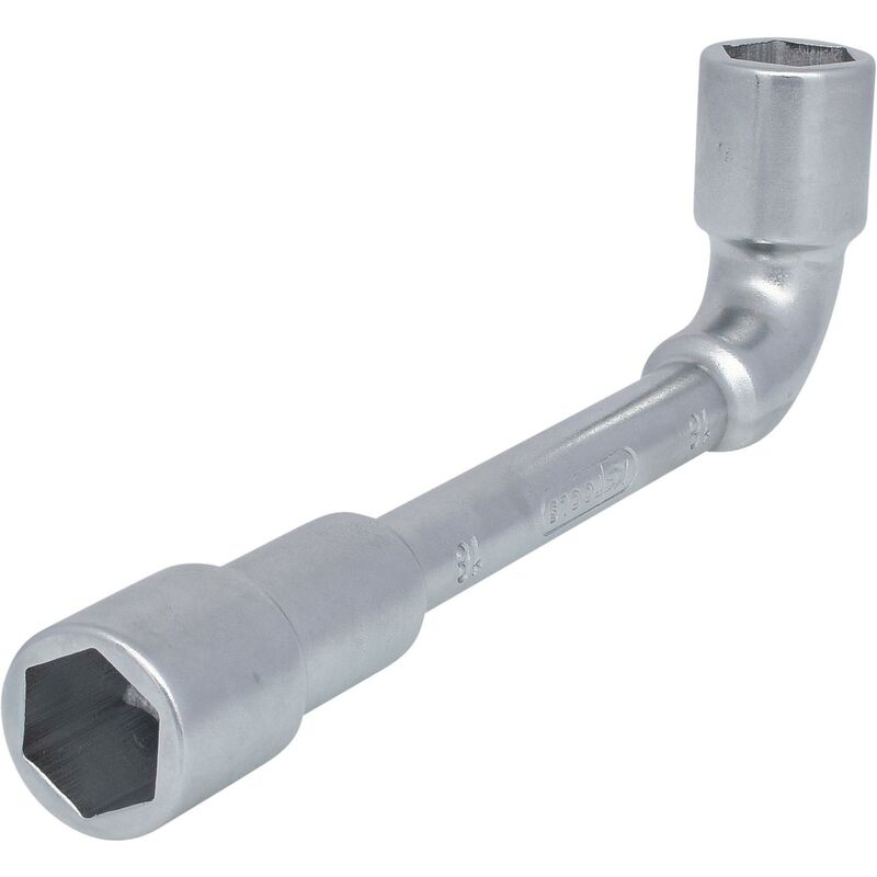 Esagonale Testa piegata a 90° Con foro passante Finemente satinate Cromo-vanadio Larghezza tra le piastre in mm 18 Forma della chiave 90° gebogen Lunghezza totale L in mm 195.0 Profilo 1 6-Kant Peso del tessuto 407 Diametro D 26.5 Dimensioni dell'imballaggio 1 Materiale1 Feinster Chrom Vanadium Stahl, matt satiniert verchromt