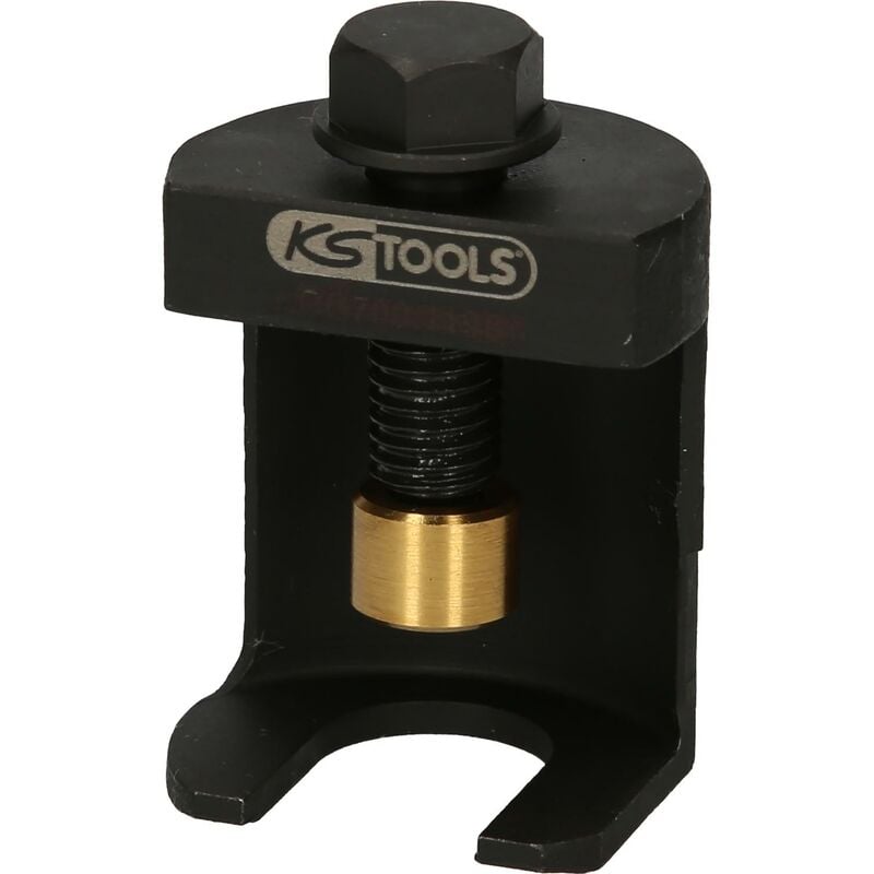 Esecuzione pesante Con forcella di estrazione Ideale per estrarre con delicatezza i bracci tergicristallo Vite di pressione forata con cappuccio in ottone per sorreggere in maniera sicura il braccio del tergicristallo Vite di pressione estremamente robusta con filettatura temprata a induzione La guida della vite di pressione avviene in una bussola mobile Evita danni alla carrozzeria e al braccio tergicristallo Con base stretta per condizioni di spazio ridotte Acciaio speciale per utensili