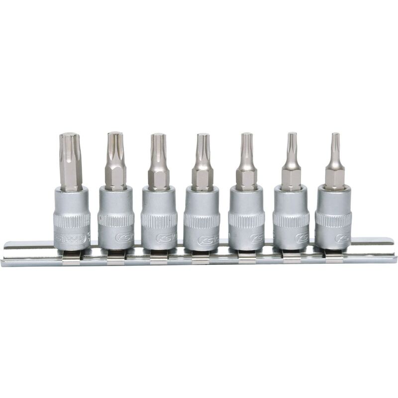 Torx Attacco quadro femmina a norma DIN 3120 / ISO 1174 con sede per sfera di tenuta Con inserto nichelato inserito a pressione Per utilizzo manuale Cromata opaca Cromo-vanadio Fornite con supporto